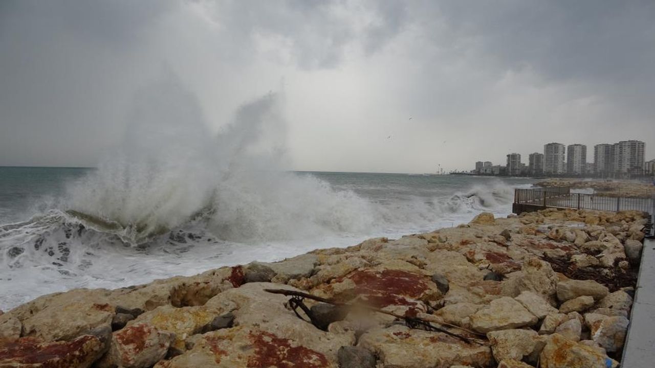Meteoroloji Genel Müdürlüğünün fırtına ve sağanak yağış uyarısı yaptığı Mersin'de, dün başlayan ve aralıklarla devam eden yağmur, kent merkezinde herhangi bir olumsuzluğa yol açmazken, fırtına ise özellikle denizde etkili oluyor. Vatandaşlara zaman zaman zor anlar yaşatan fırtına dolayısıyla bazı bölgelerde ağaçların dallarını kırdı. Denizde ise fırtına nedeniyle dev dalgalar oluştu. Özellikle kent merkezindeki Atatürk Parkı sahili ile Kültür Parkı sahilinde dalgaların boyu 4-5 metreyi buldu. Sahile vuran dalgalar görenleri korkuturken, bazı bölgelerde deniz karaya çıktı. Ayrıca dalga dolayısıyla denizdeki ağaç parçaları karaya sürüklendi. Balıkçı barınağında bulunan tekneler denize açılamazken, açıkta bulunan büyük tekneler de demir attı.