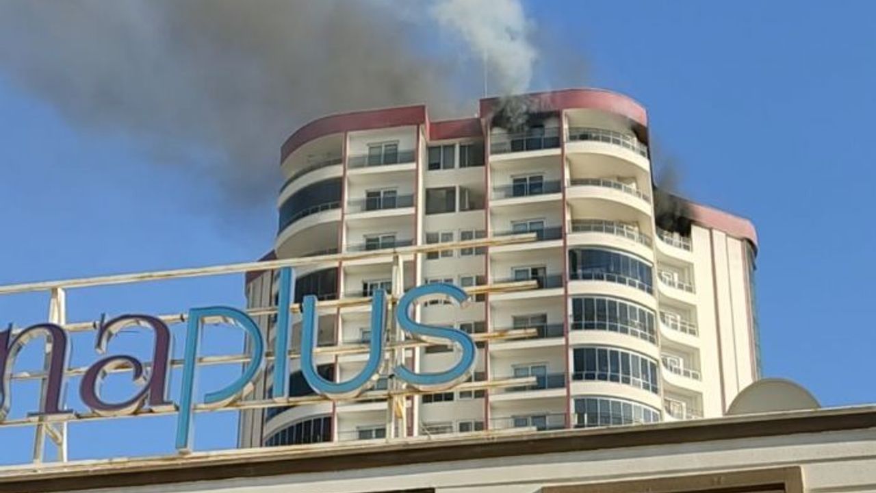 Mersin Cemevi civarında bulunan bir sitede, çıkış noktası henüz bilinmeyen yangında, itfaiye elkipleri sitenin son katına ulaşmakta güçlük çekiyor.