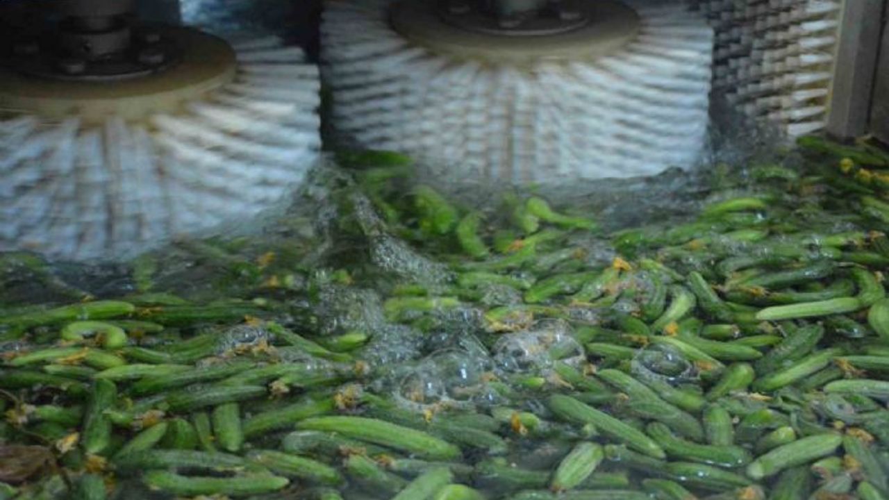 Burada kasalardan tekneye boşaltılan salatalıklar fırça ve su ile temizlenerek banda çıkarılıyor. Ardından salatalıkların turşunun suyunu içine çekmesi için gerekli olan iğneleme işlemine geçiliyor. Ardından salatalıklar tekrar boş bir tekneye düşüyor ve tenekeye konarak bir dizi işlemden geçecek kurulum aşamasına geçiliyor.