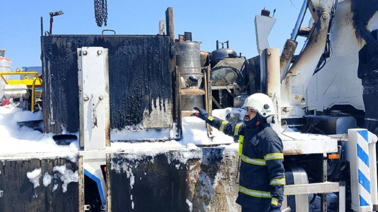 Kahramanmaraş'ta içinde tüplerin de olduğu bir kamyonun kasasında çıkan yangın, itfaiye ekiplerince söndürüldü.