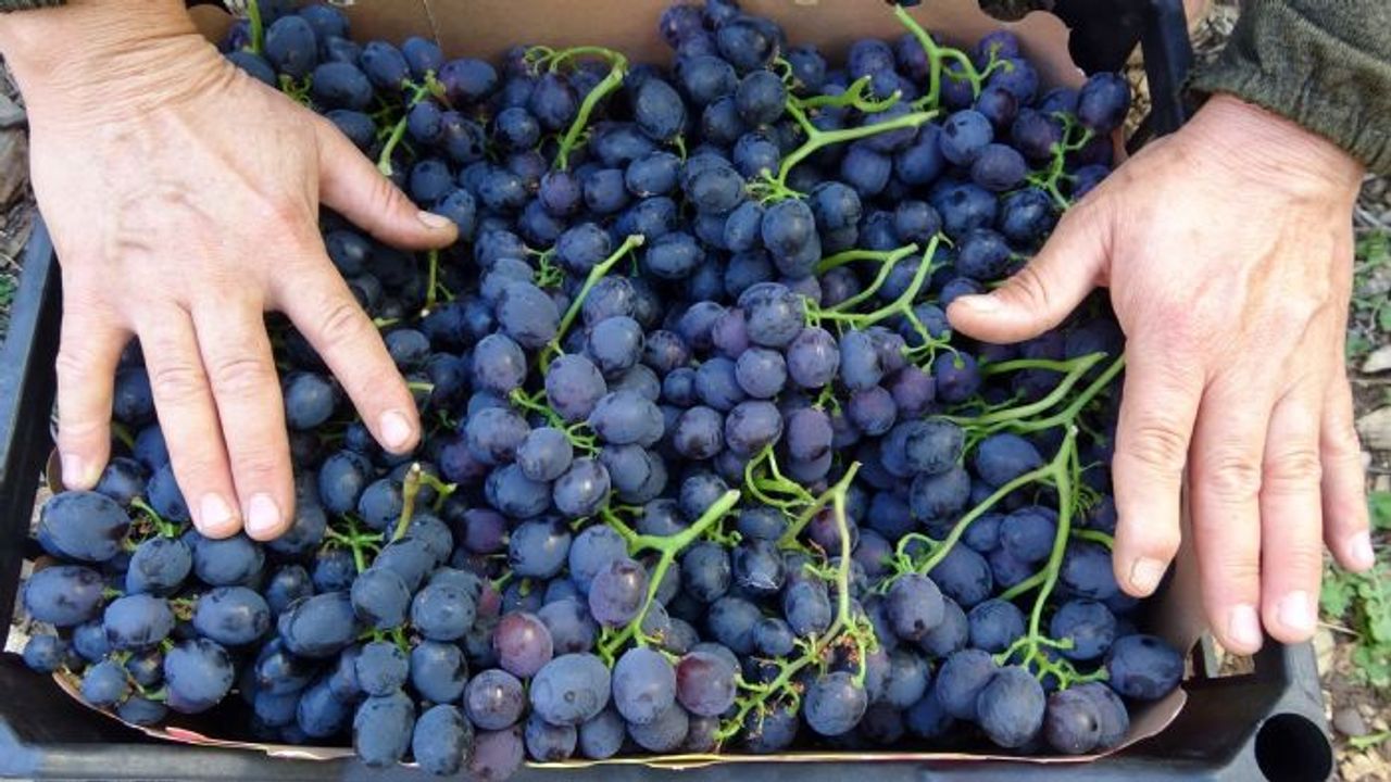 Mikro klima özelliğe sahip Erdemli ilçesi Kocahasanlı beldesinde örtü altında turfanda yetiştirin erik, kayısı, yenidünya ve beyaz üzümün ardından yörede siyah inci olarak bilinen kara üzümün de hasadına başlandı.