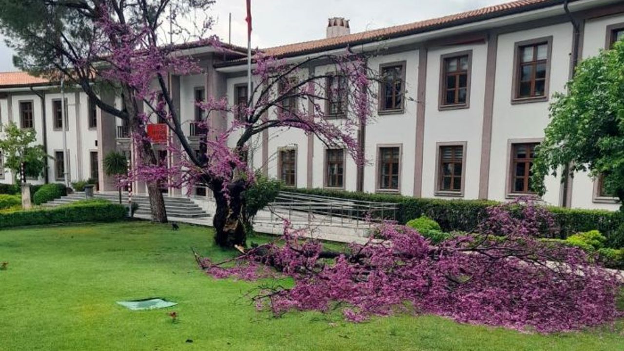 Nisan ve Mayıs aylarında Muğla Valiliğine gelen vatandaşlar tarafından hatıra fotoğraflarının çekildiği pembe ve kırımızı renkteki çiçekleri ile büyüleyici bir güzelliğe bürünen Erguvan ağcının gövdesinden büyük bir dal şiddetli fırtına sonrası koptu.