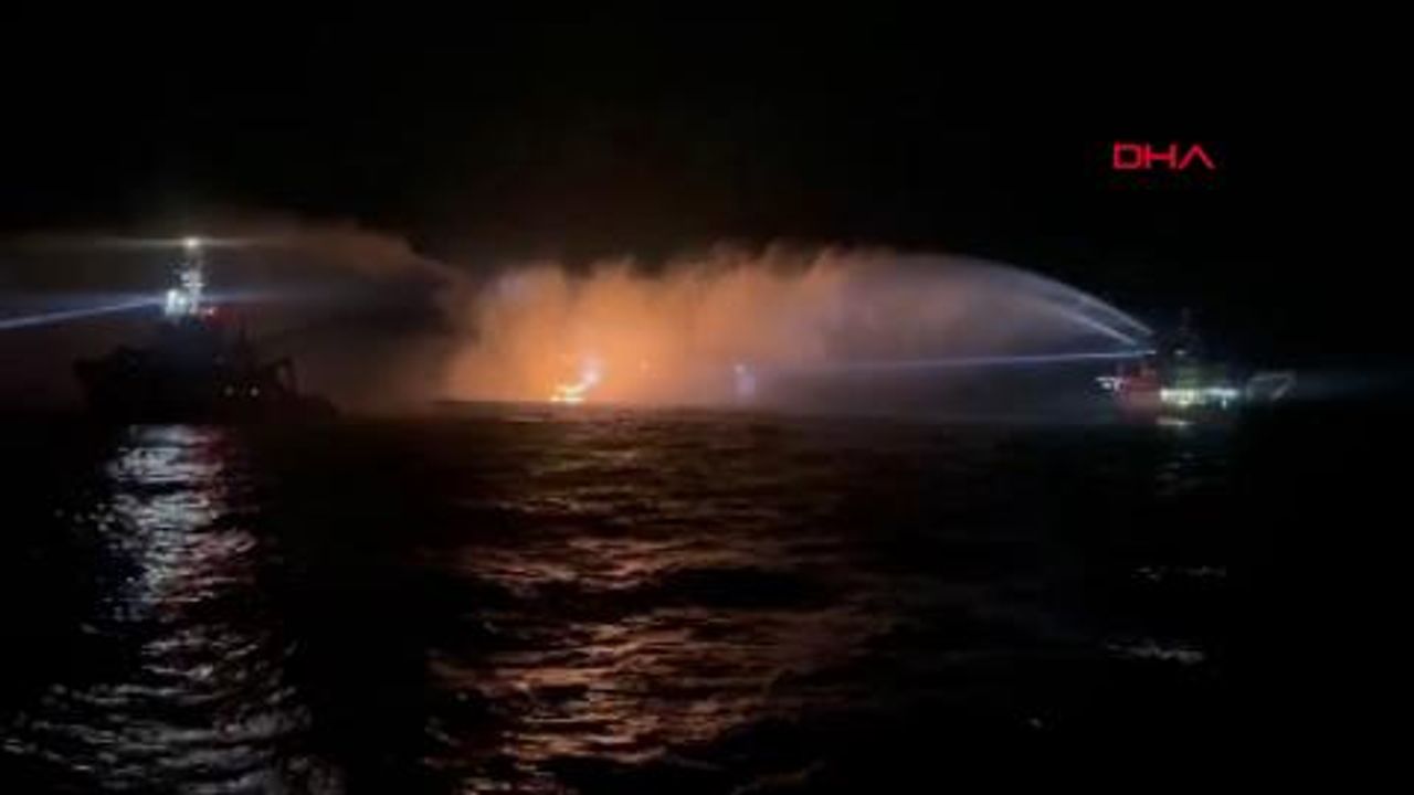 Öte yandan, yabancı menşeli gemide çıkan yangına ilişkin görüntülere ulaşıldı.